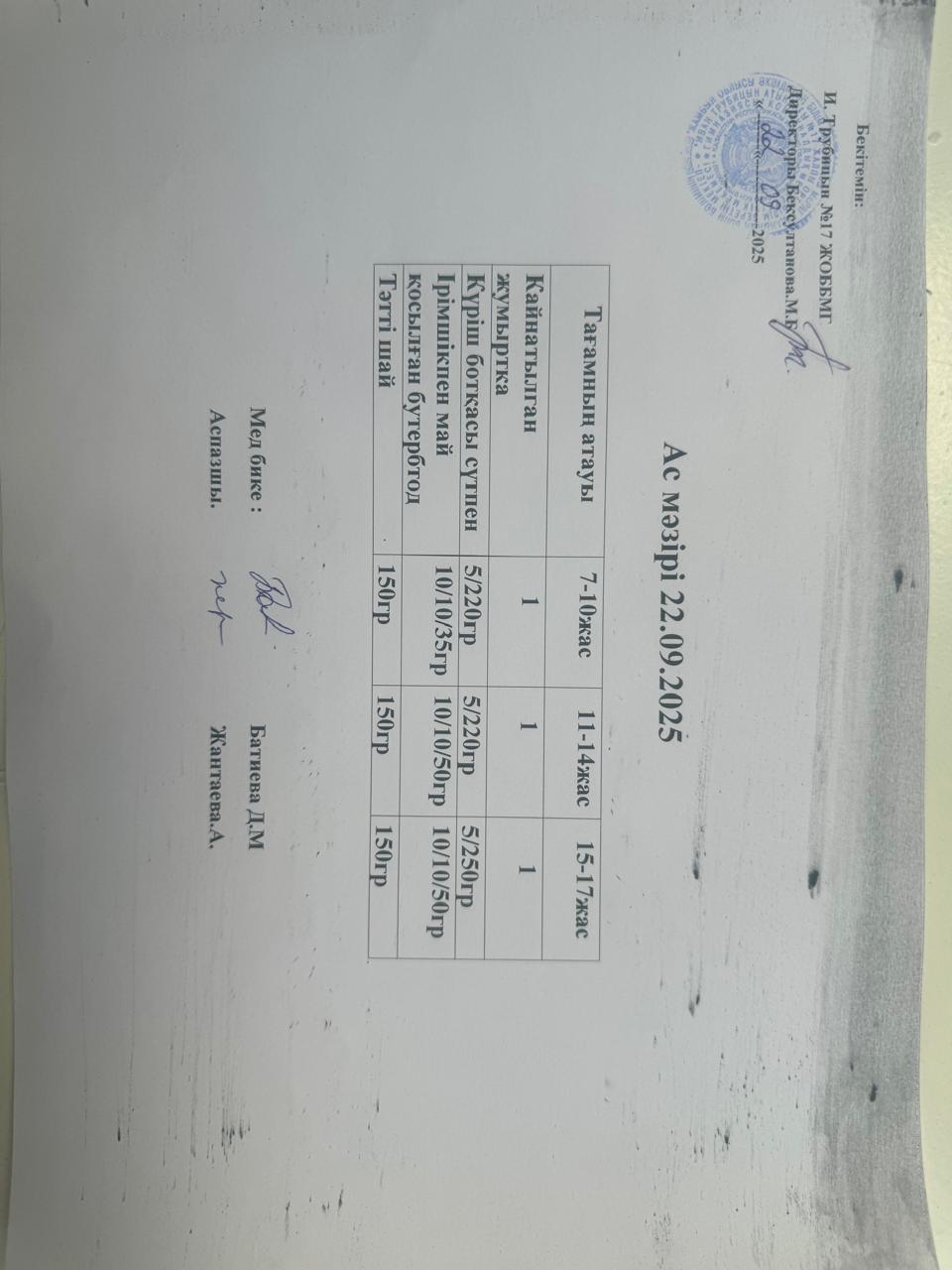 09 март 2023 Ас мәзірі