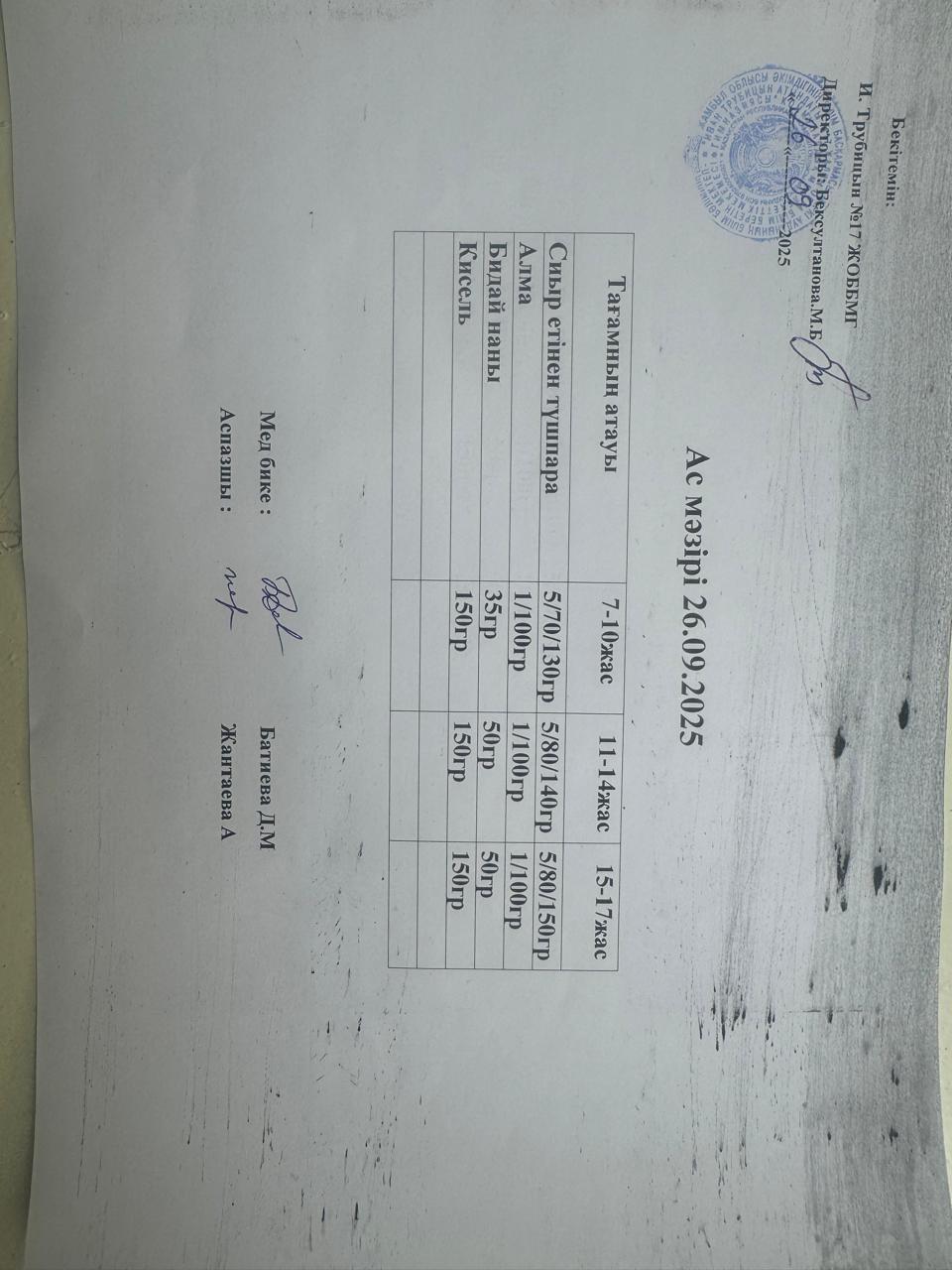 Ас мәзірі » ОШГ №17 имени Ивана Трубицына
