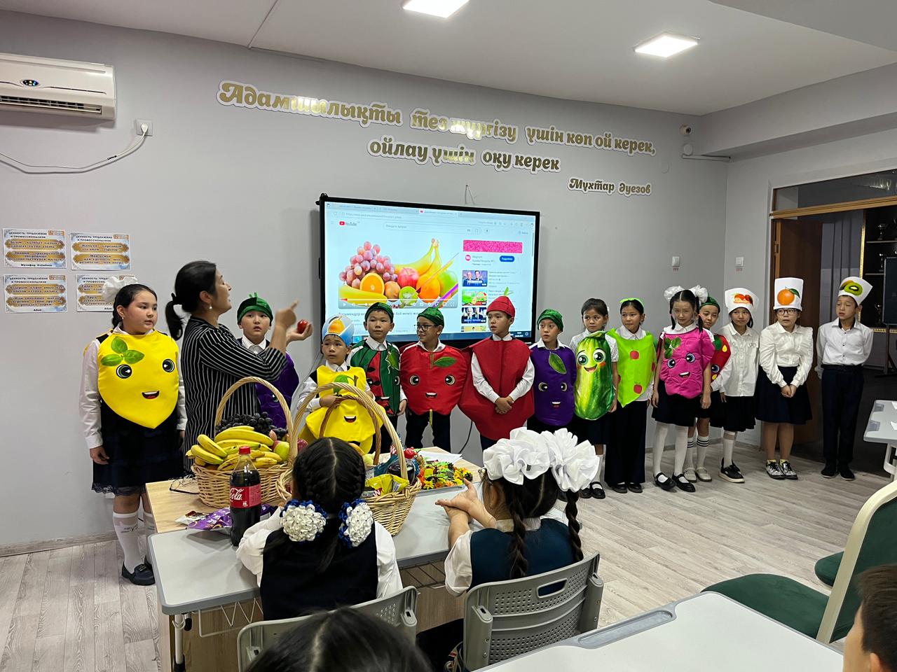 Балалар сүйікті жемістері жайлы айтып, ойындар ойнап, дәрумендердің пайдасын білді. 🥝🍊
