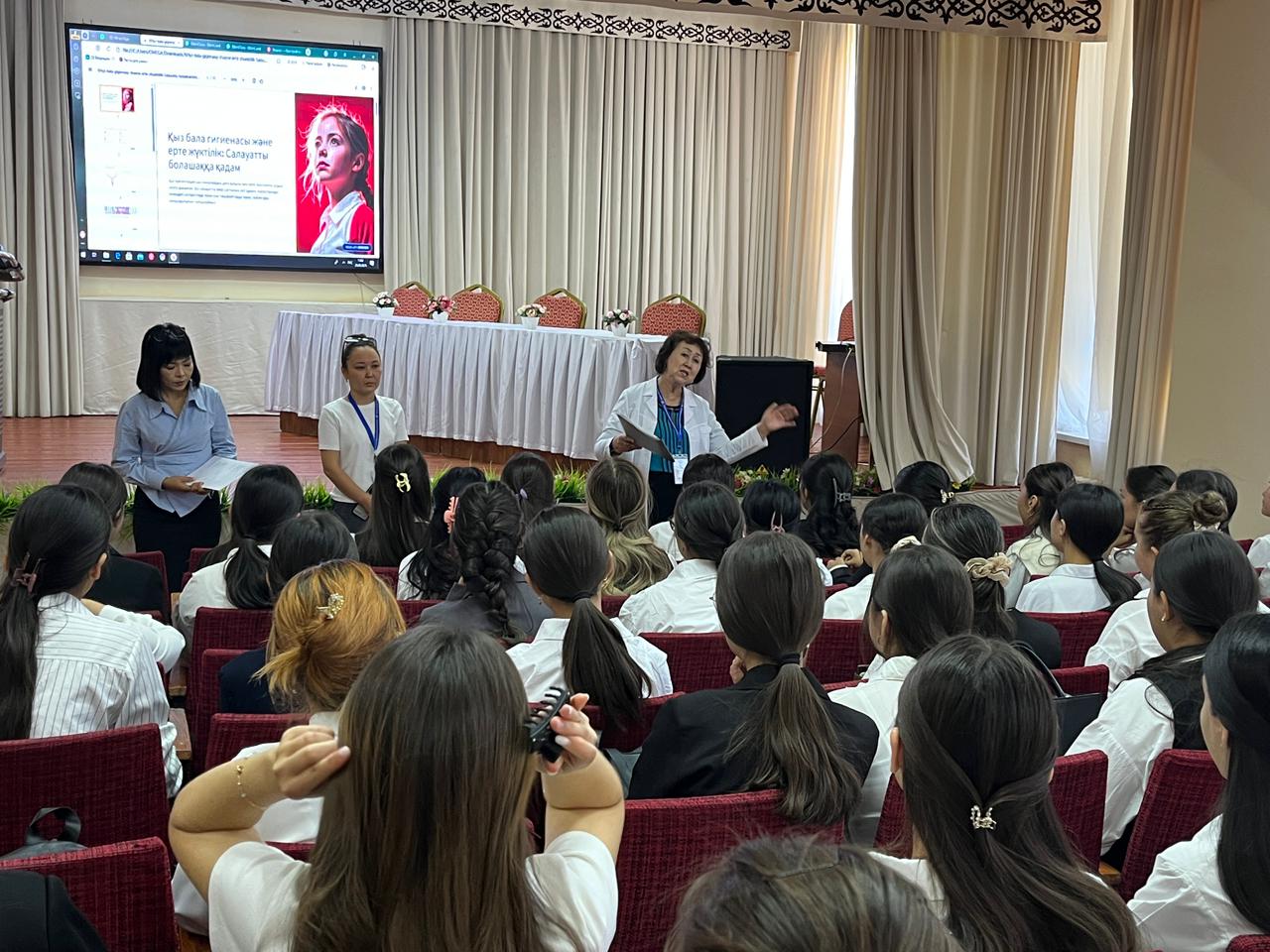 🔹 Мамандар мен ұстаздар қыздарға маңызды кеңестер беріп, сауалнама мен сұрақ-жауап форматында кездесу жалғасты.