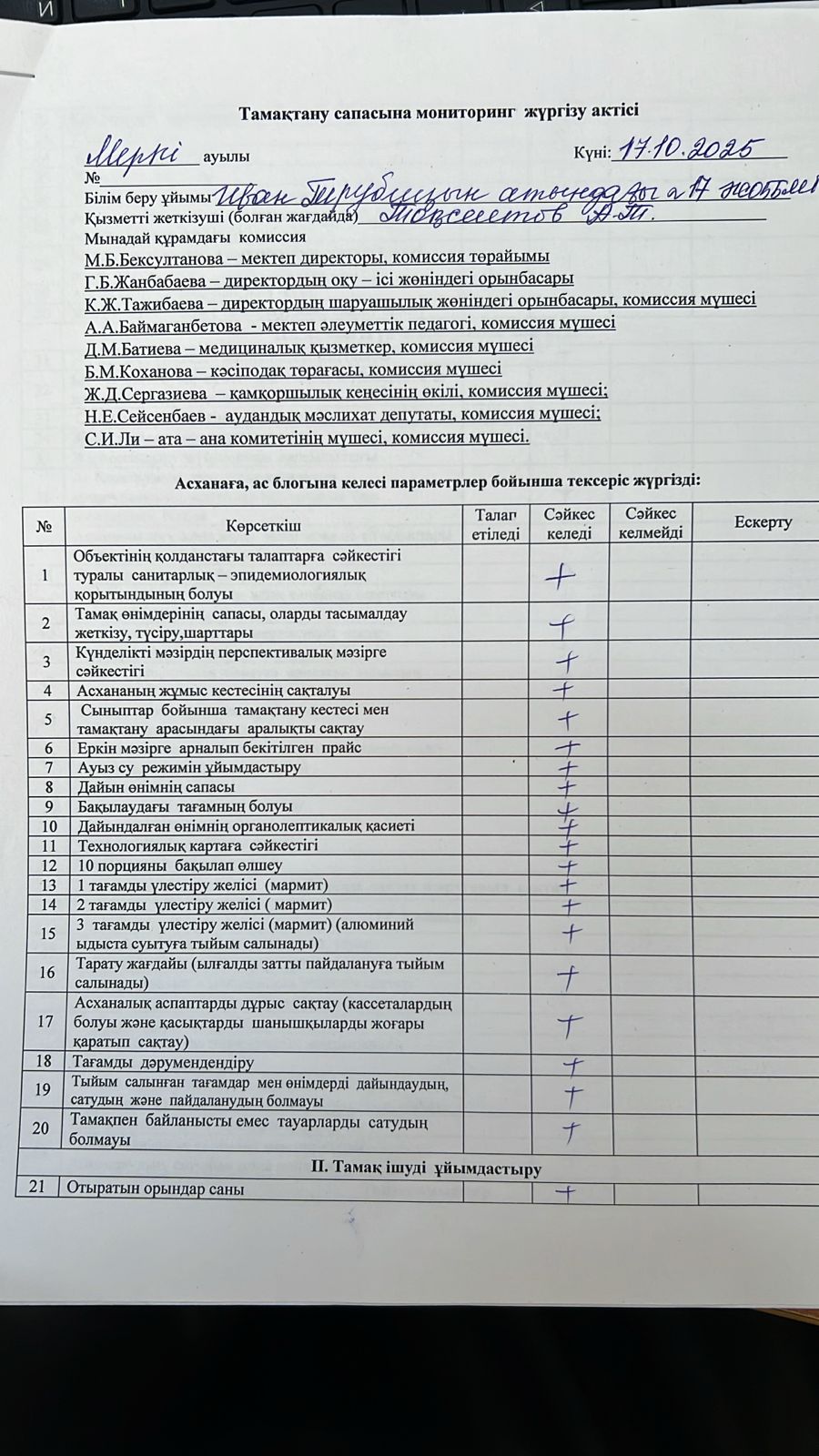 » » Тамақтану сапасына мониторинг жүргізу актісі № 28
