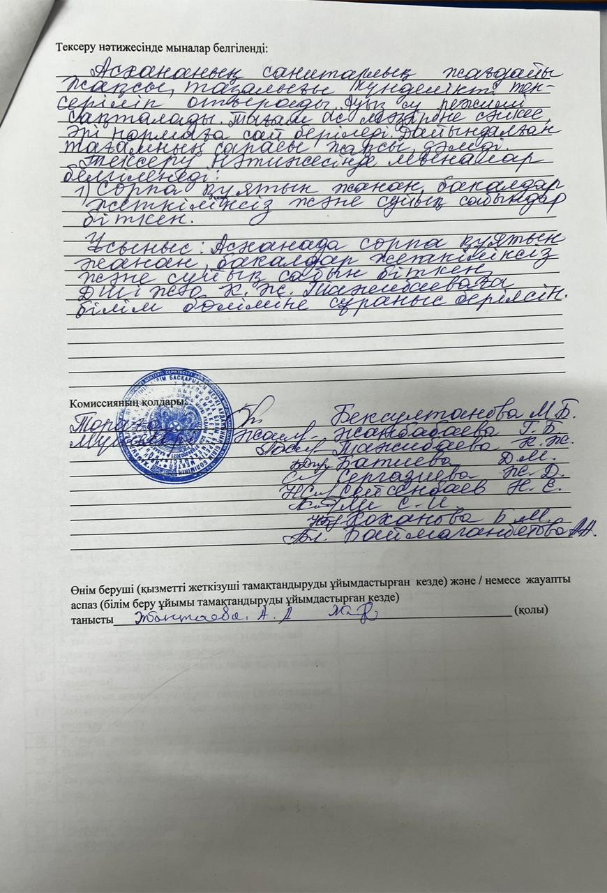 » » Тамақтану сапасына мониторинг жүргізу актісі № 29