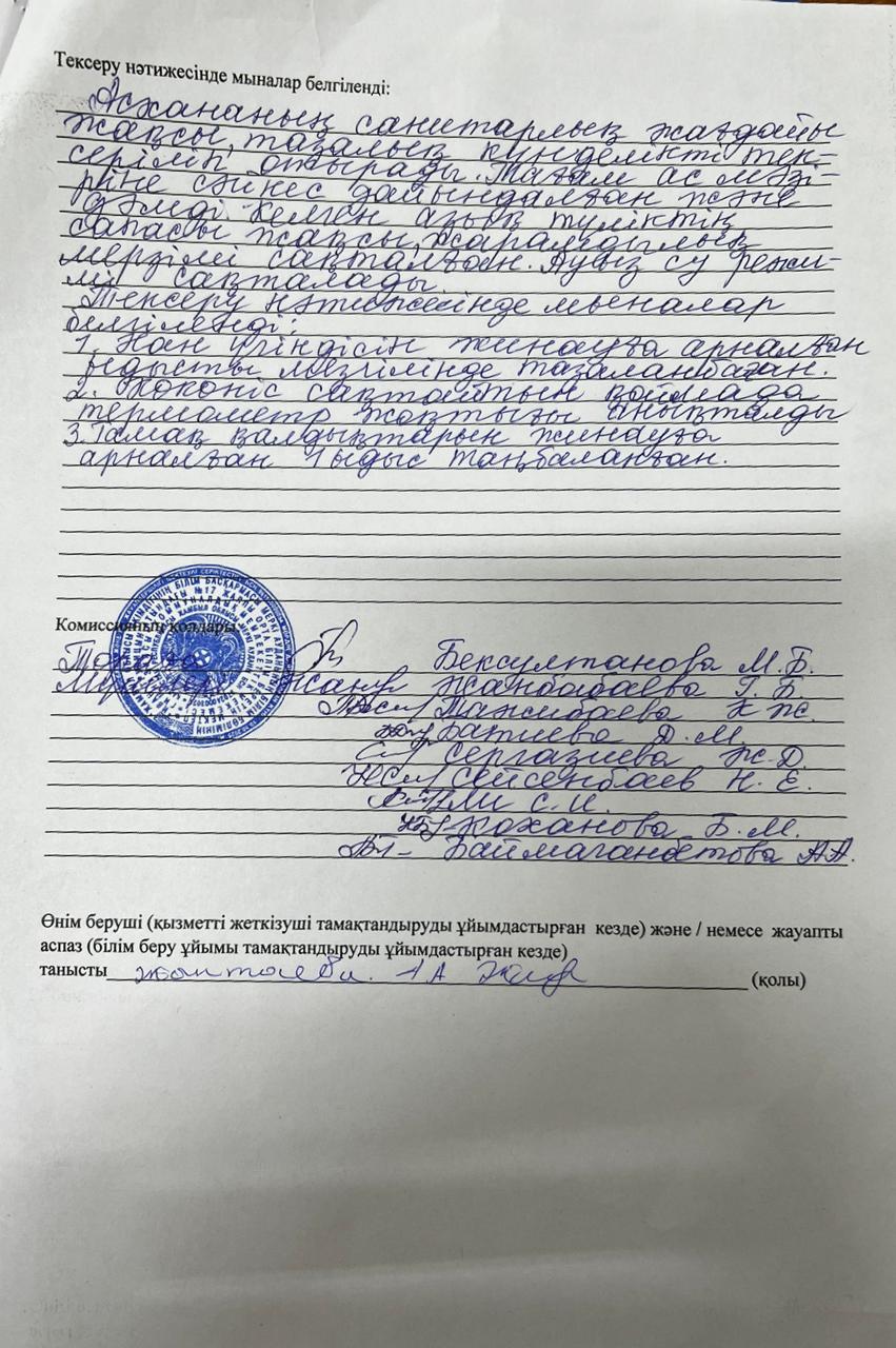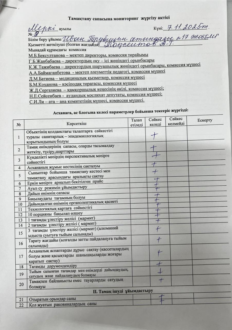 Тамақтану сапасына мониторинг жүргізу актісі № 30
