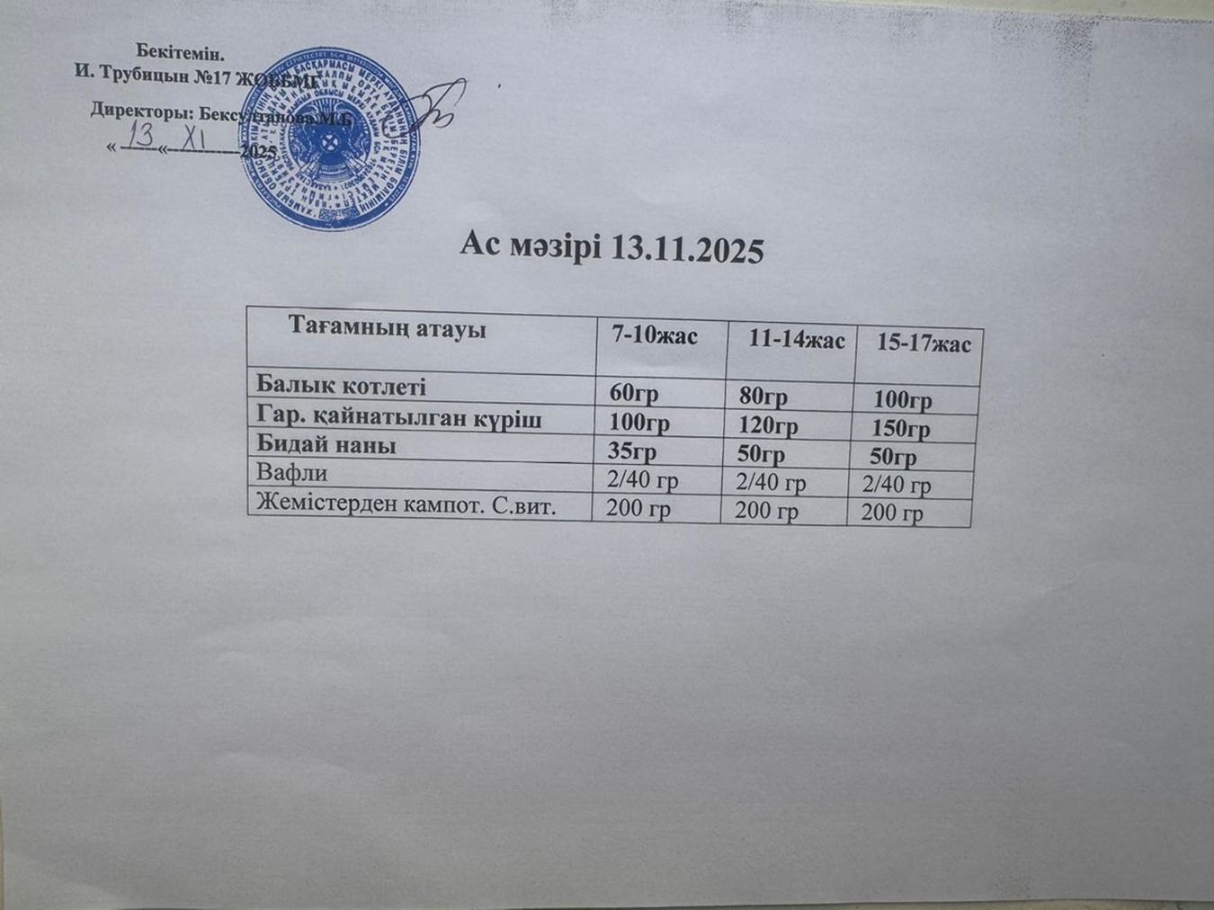 Ас мәзірі » ОШГ №17 имени Ивана Трубицына