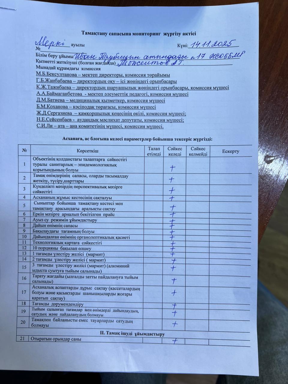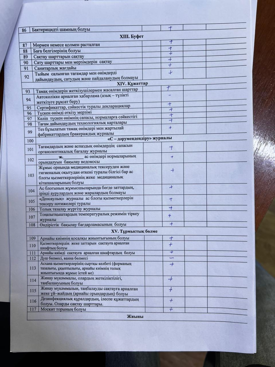 » » » Тамақтану сапасына мониторинг жүргізу актісі № 31